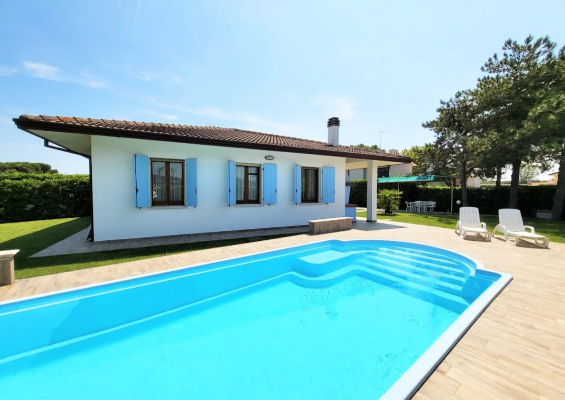 Villetta composta da ampio soggiorno, cucina, tre camere da letto matrimoniali, due bagni e spazioso porticato con caminetto.